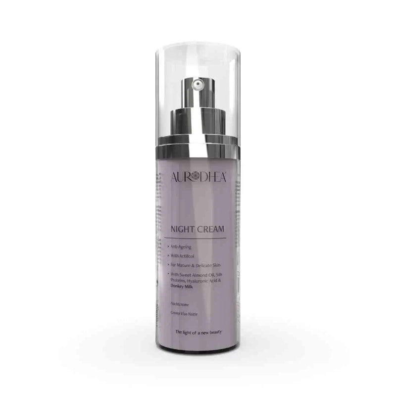 Die Aurodhea Nachtcreme mit Eselsmilch ist eine reichhaltige Anti-Aging-Pflege für reife Haut ab 45 Jahren. Ihre lifting-aktive Formel strafft sichtbar, glättet Falten und regeneriert die Haut über Nacht.